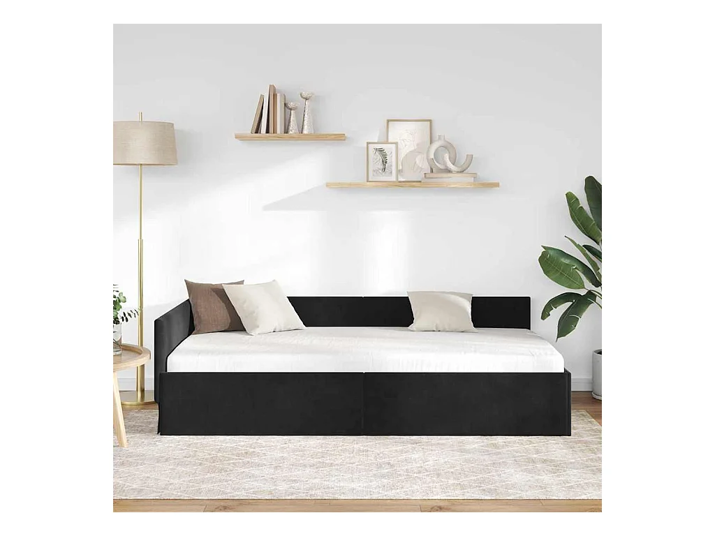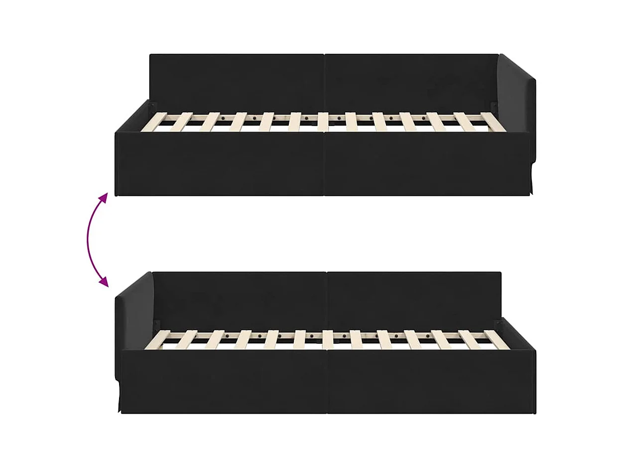 Estrutura de Cama de Canto Preto 90 x 190 cm tecido