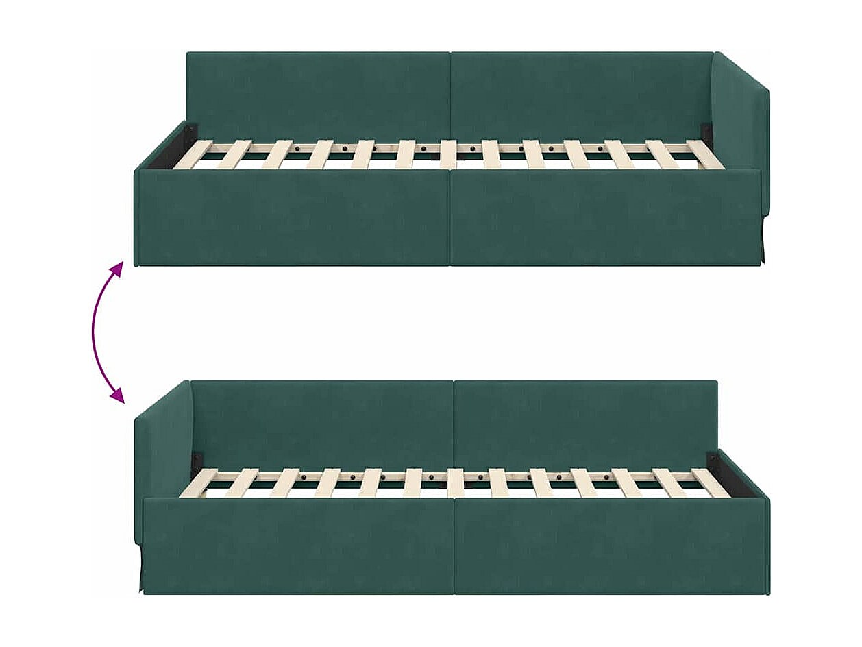 Estrutura de Cama de Canto Verde-escuro 100 x 200 cm Veludo
