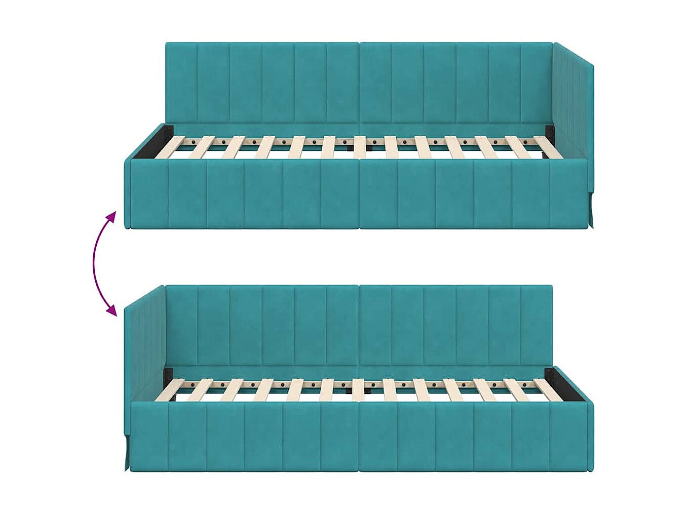 Estrutura de Cama de Canto Turquesa 90 x 190 cm Veludo