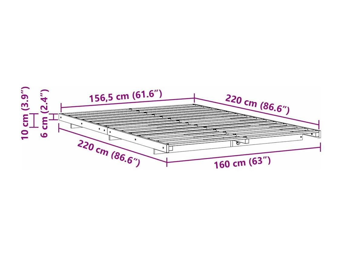 Cama sem colchão 160x200 cm madeira de pinho maciça branco