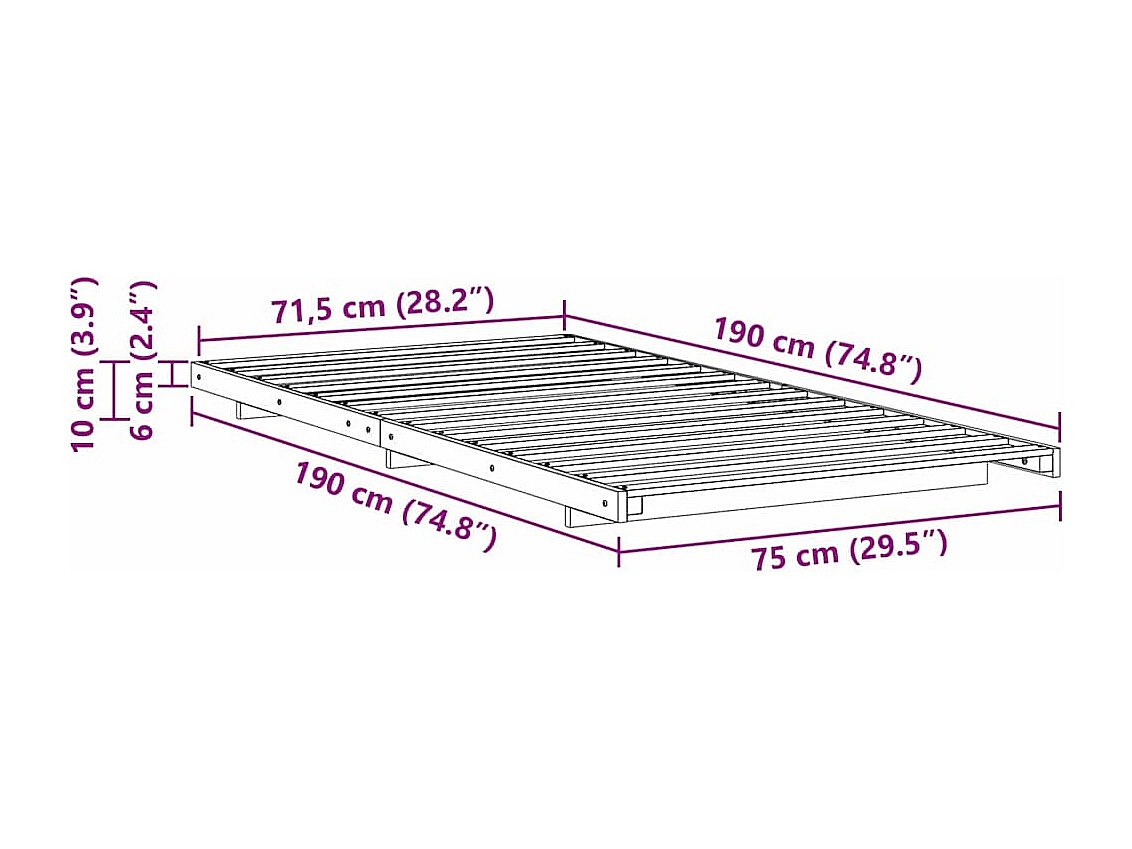 Cama sem colchão 75x190 cm madeira de pinho maciça branco