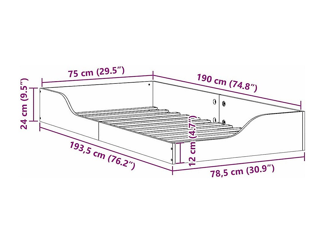 Estrutura de cama de chão Branco 75 x 190 cm