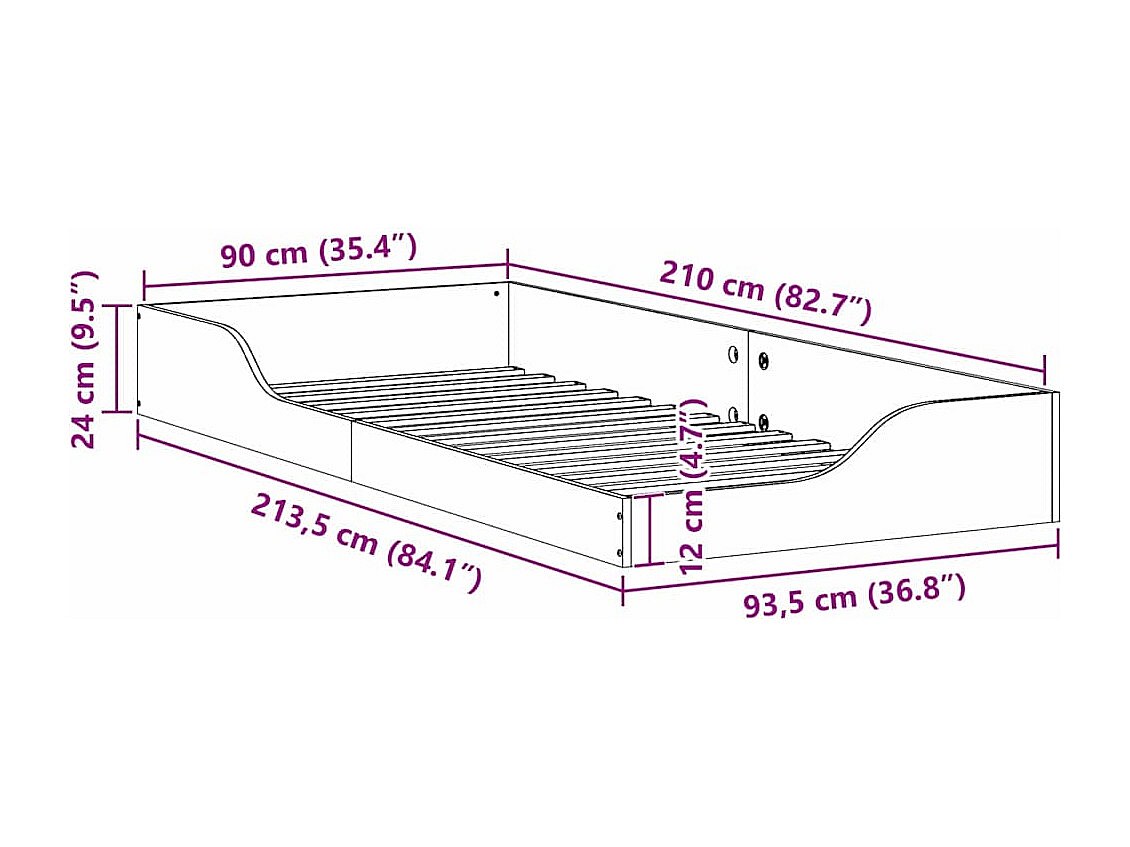 Cama sem colchão 90x200 cm madeira de pinho maciça