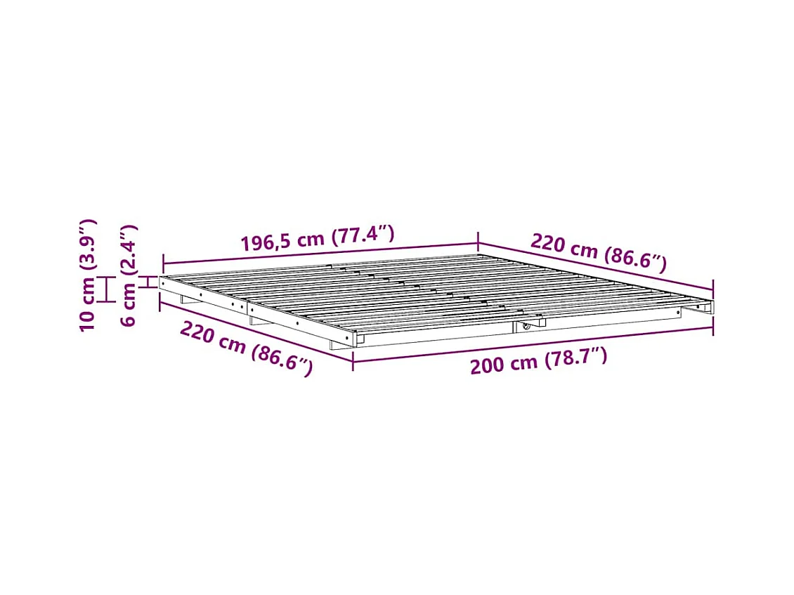 Estrutura de cama de chão Castanho-mel 200 x 220 cm