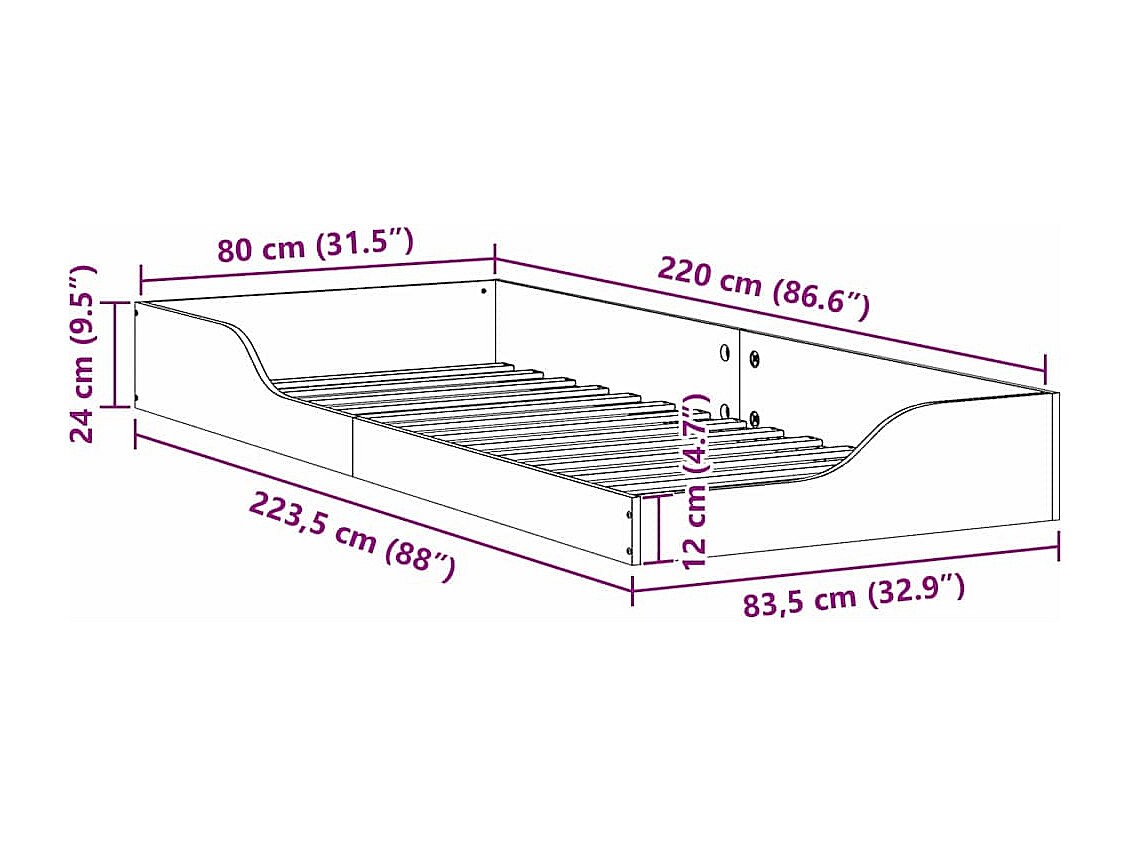 Estrutura de cama de chão Castanho-mel 80 x 220 cm