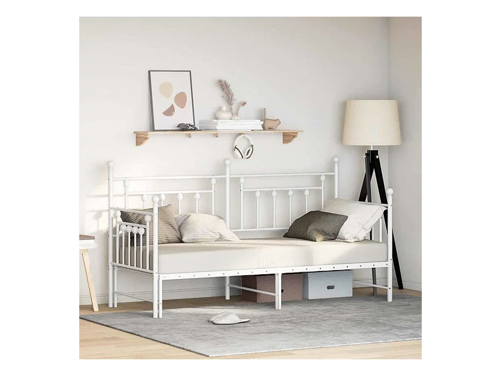Estrutura de cama de dia com cabeceira Branco 80 x 200 cm Aço