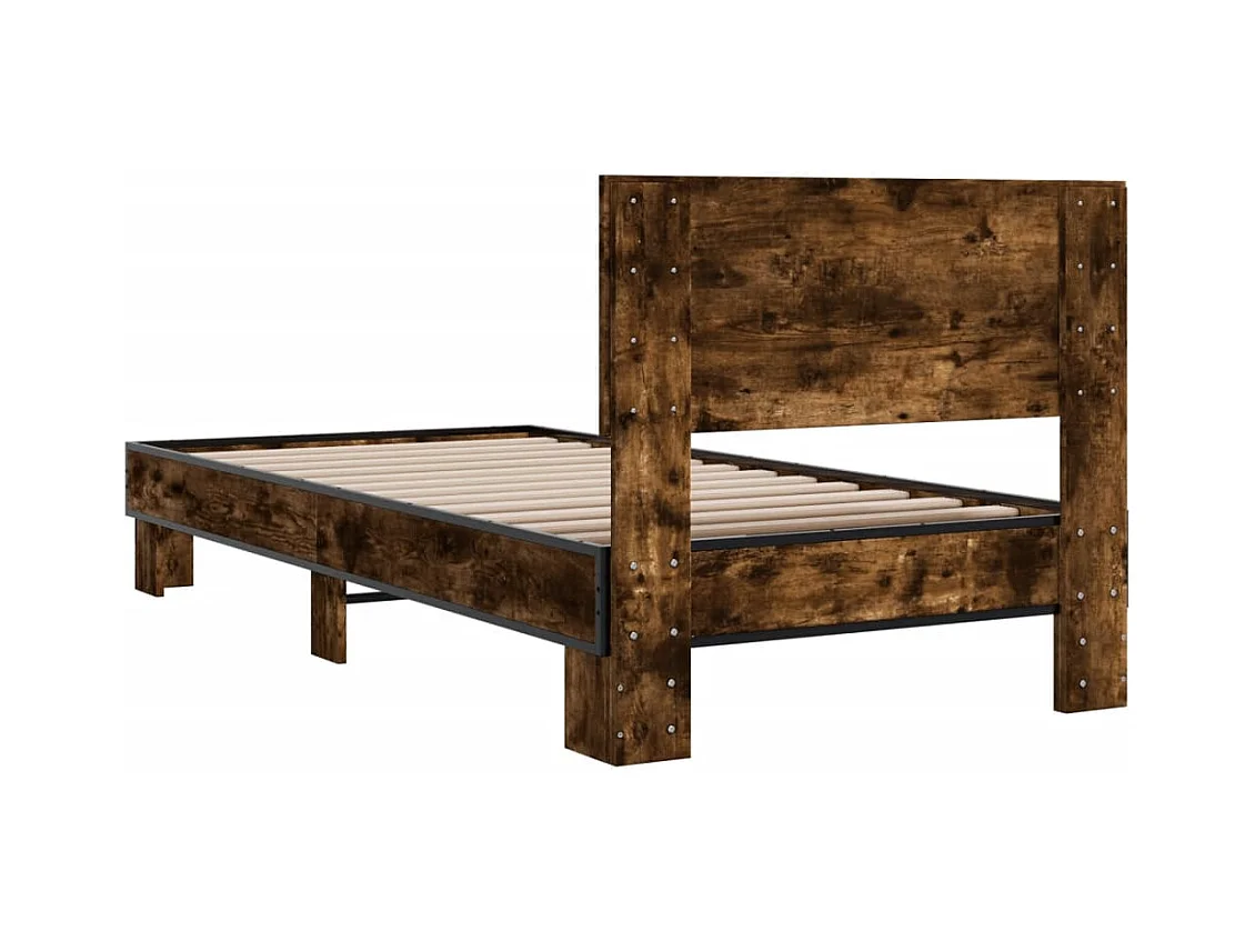 Estrutura de cama derivados de madeira e metal carvalho fumado