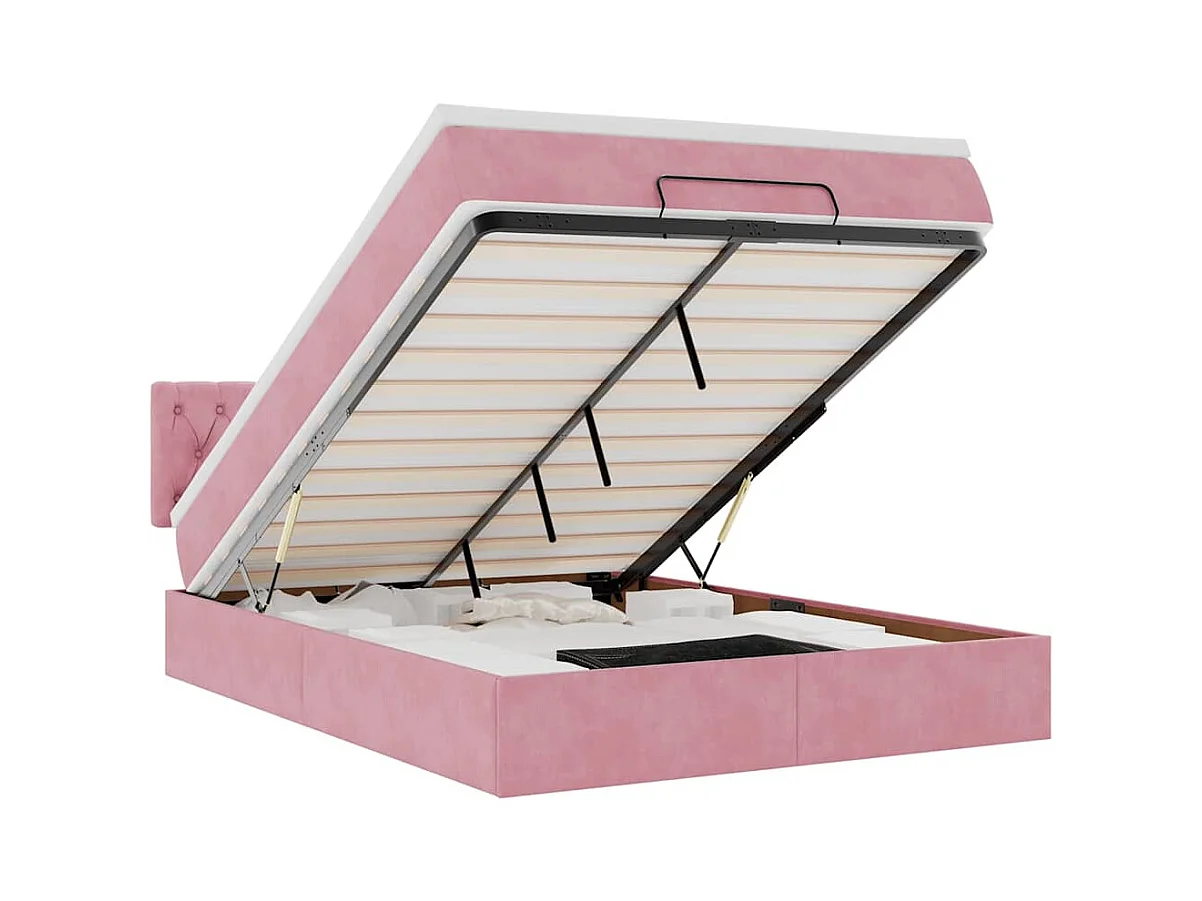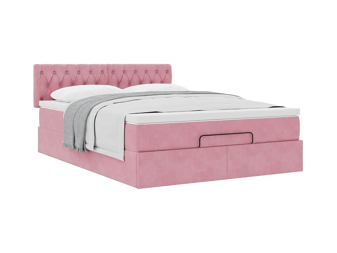 Estrutura de cama otomana com colchão 140x200 cm veludo rosa