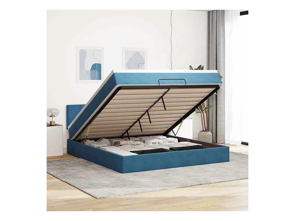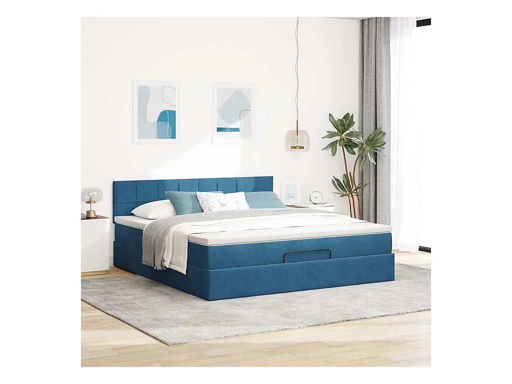 Cama Box com colchão Azul escuro 160 x 200 cm Veludo