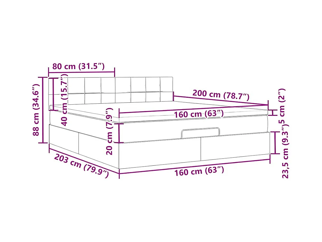 Estrutura de cama otomana com colchão 160x200 cm azul escuro