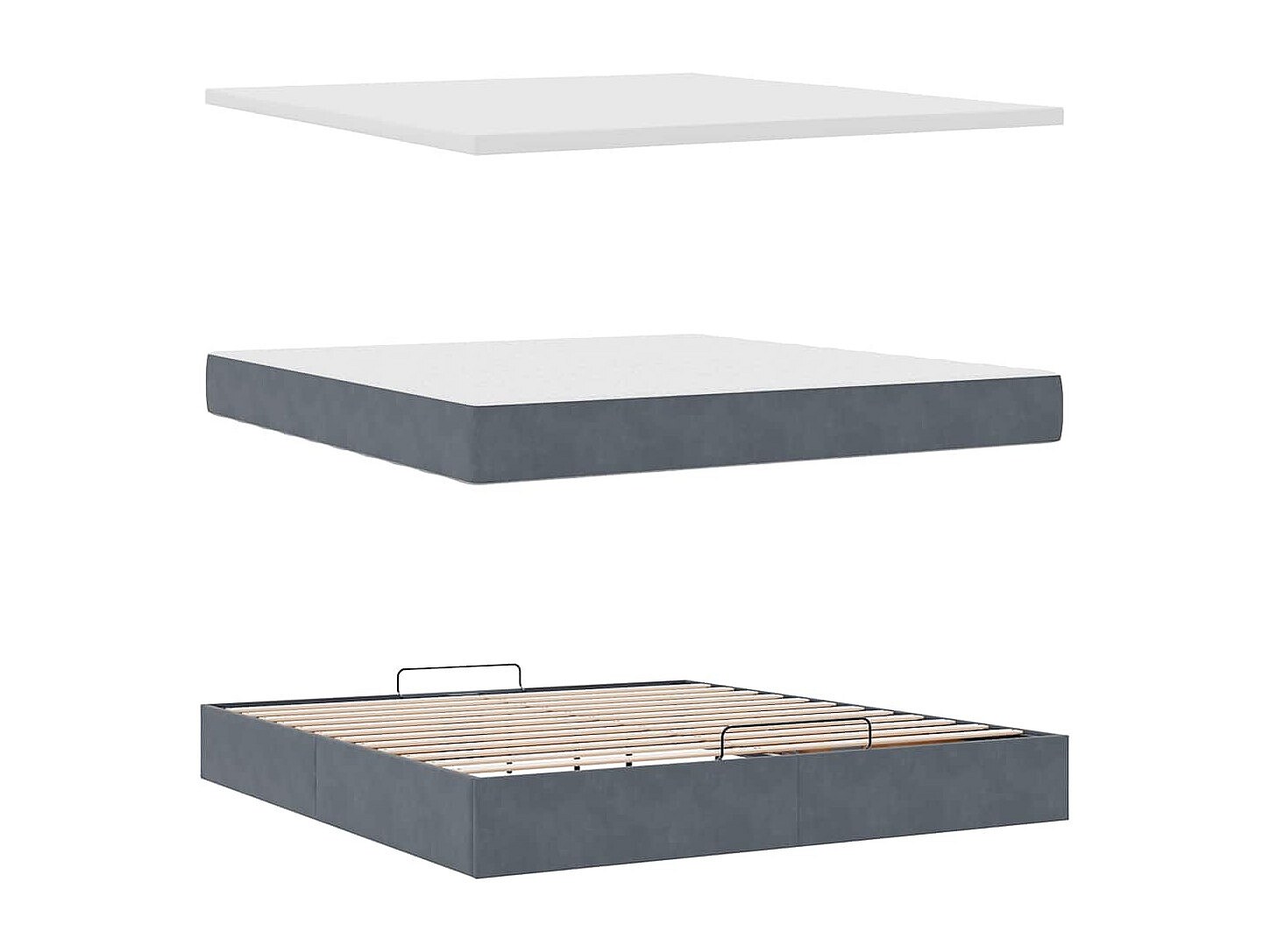 Cama Box com colchão Cinzento escuro 160 x 200 cm Veludo