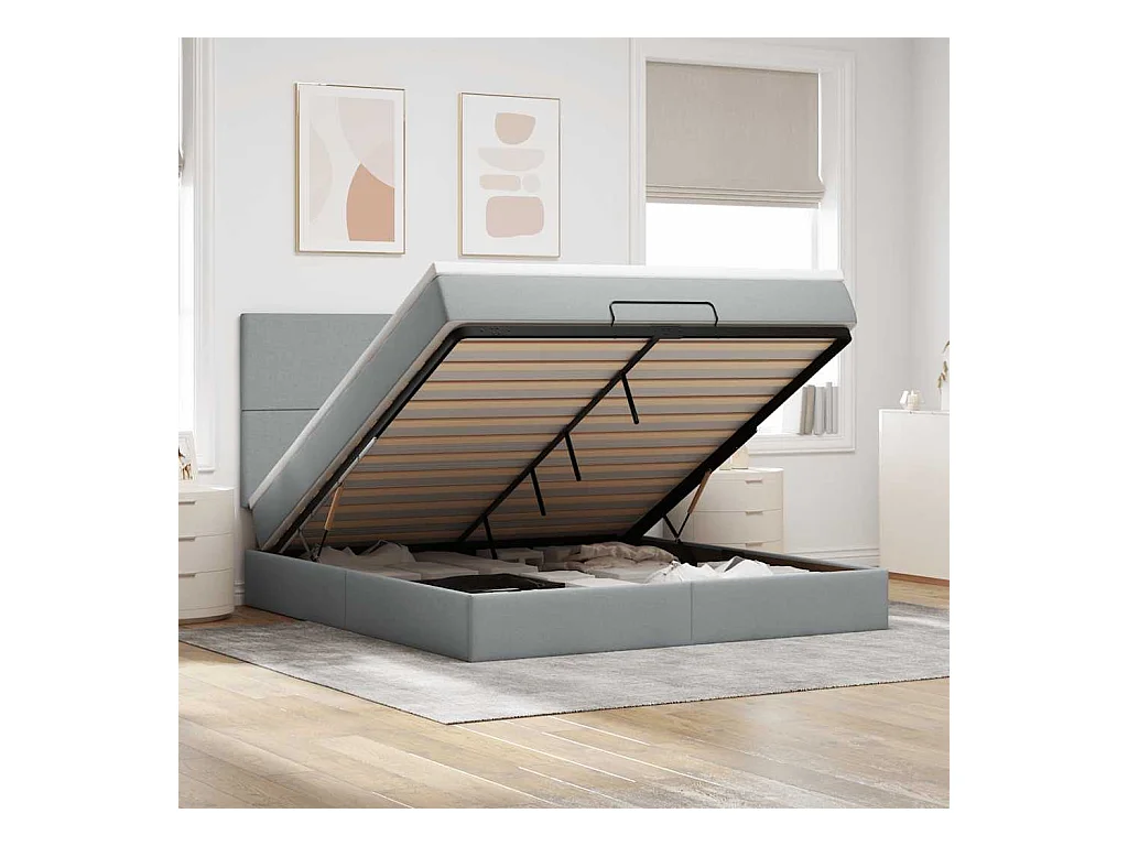 Estrutura de cama otomana com colchão 180x200 cm cinzento claro