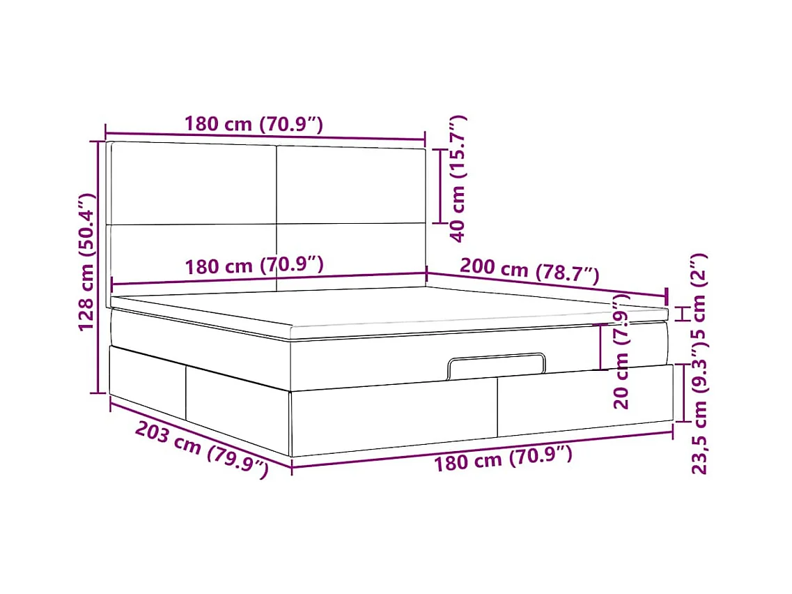 Estrutura de cama otomana com colchão 180x200cm cinzento escuro
