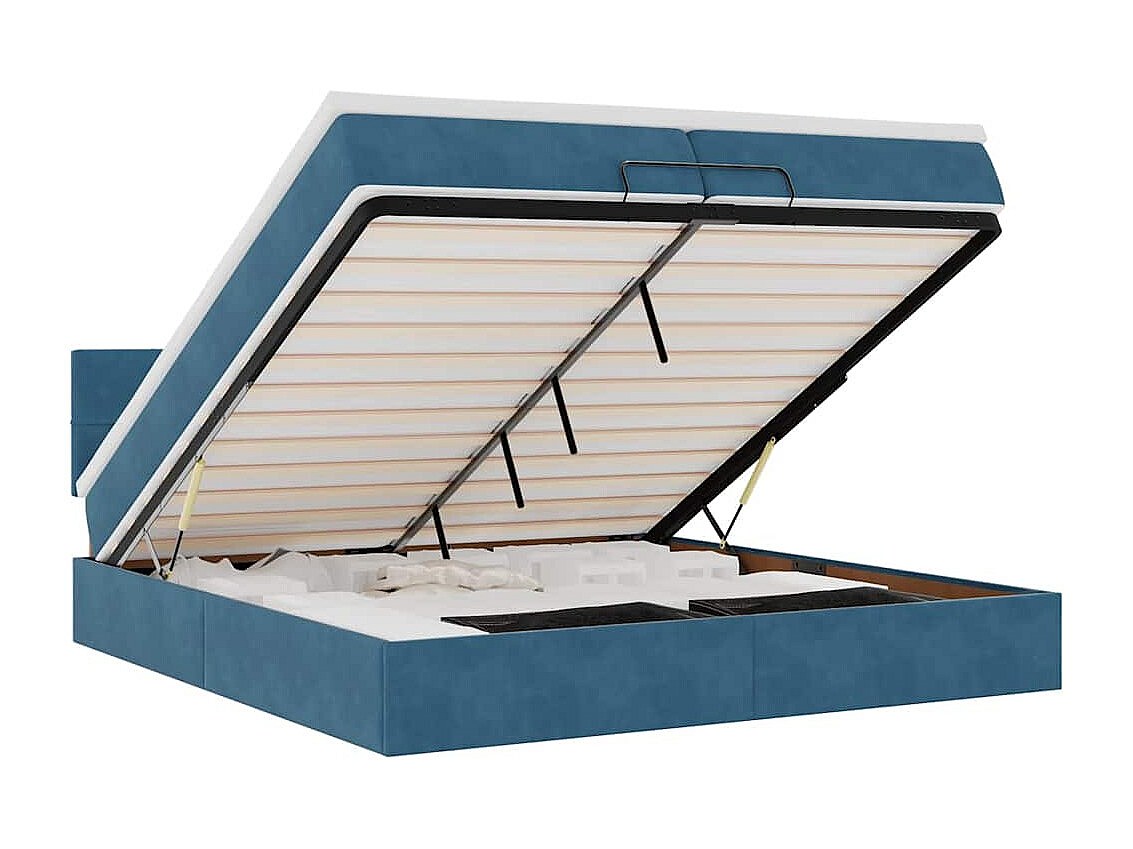 Estrutura de cama otomana com colchão azul escuro Veludo
