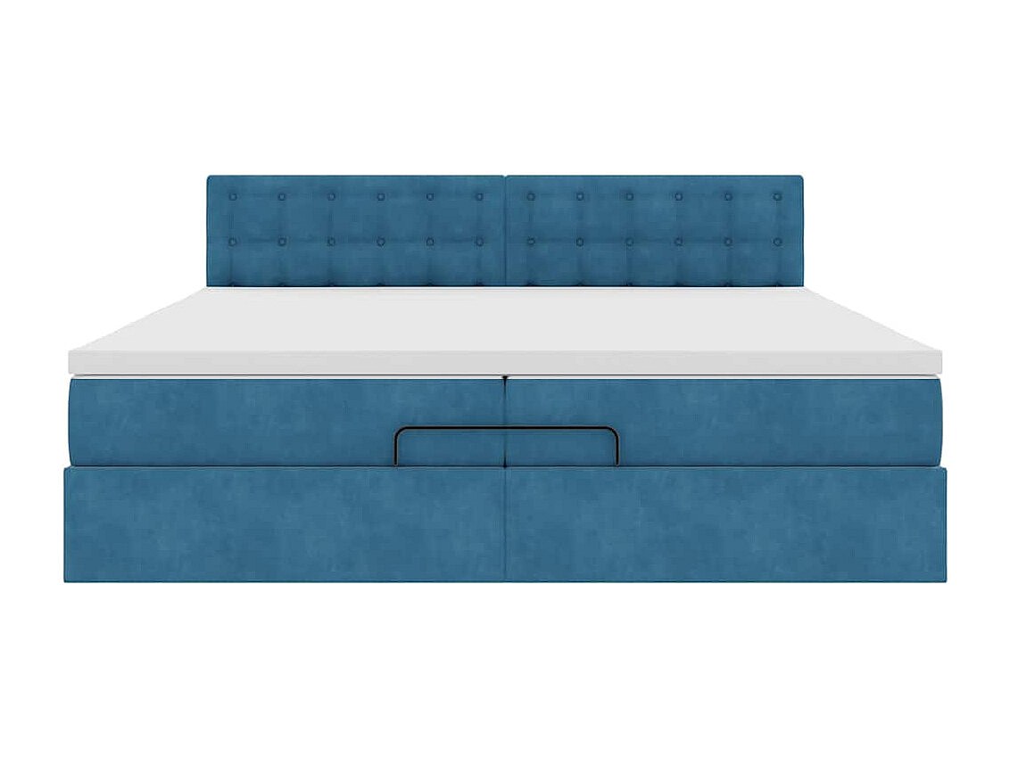 Estrutura de cama otomana com colchão azul escuro Veludo