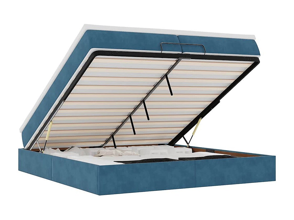 Estrutura de cama otomana com colchão azul escuro Veludo