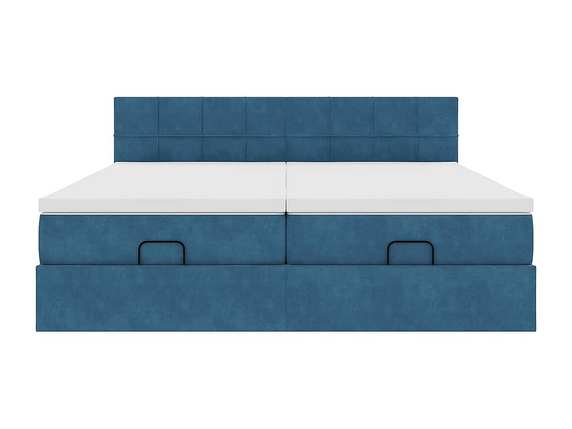 Estrutura de cama otomana com colchão azul escuro veludo