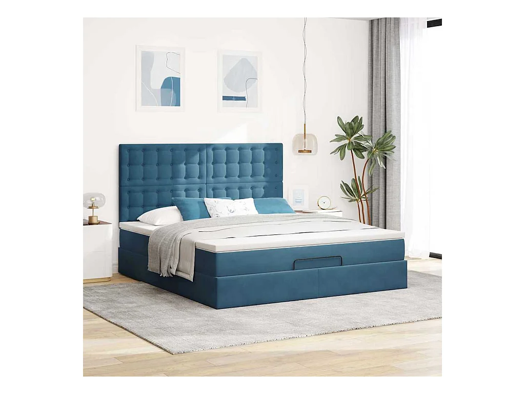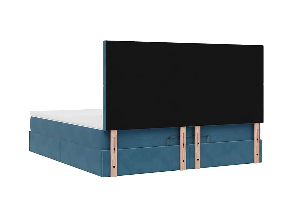 Estrutura de cama otomana com colchão azul escuro veludo