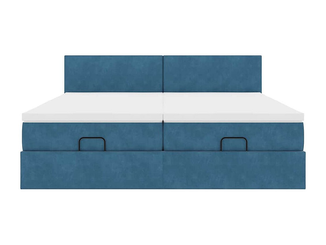 Estrutura de cama otomana com colchão azul escuro veludo
