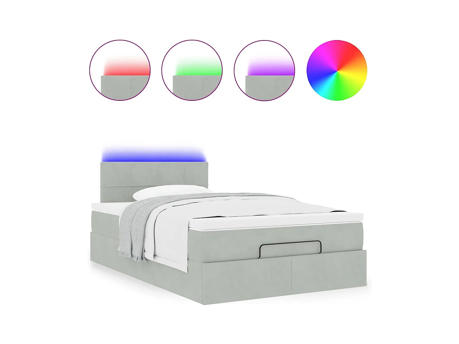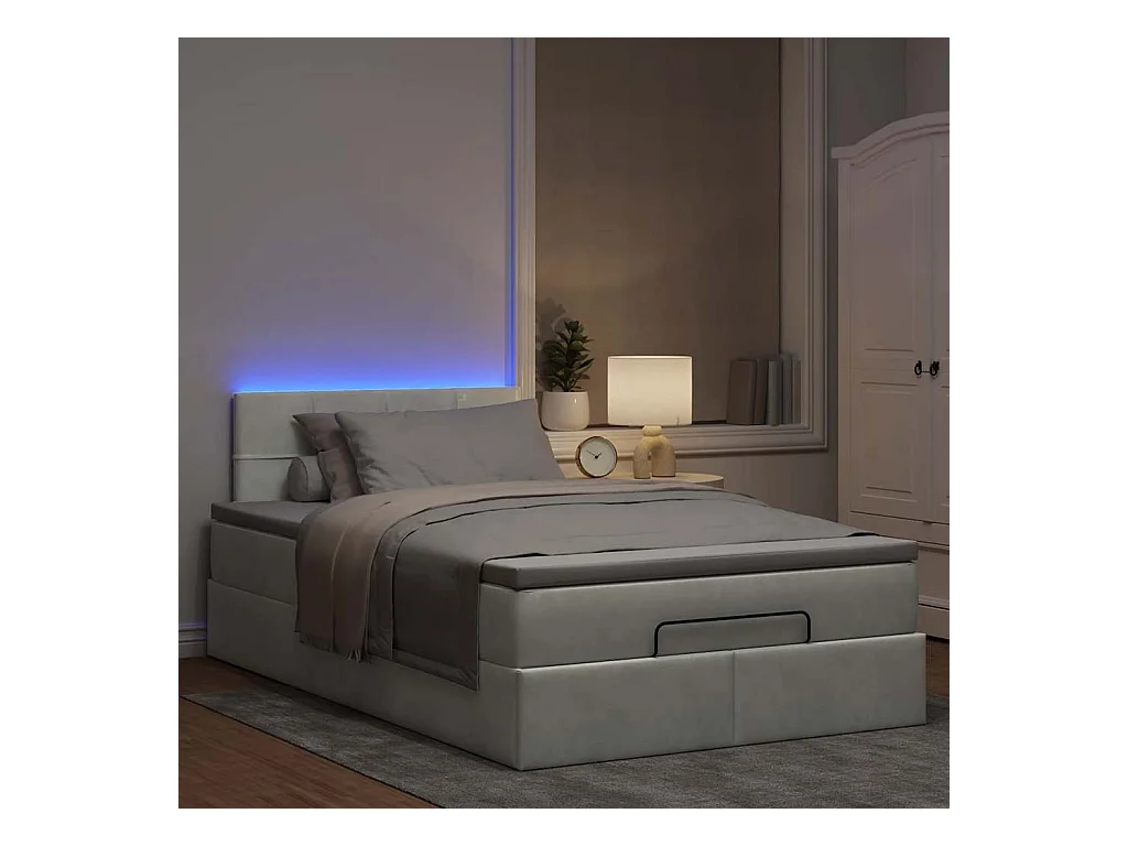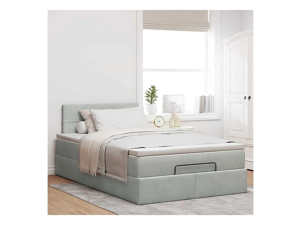 Estrutura de cama otomana com colchão cinza claro Veludo