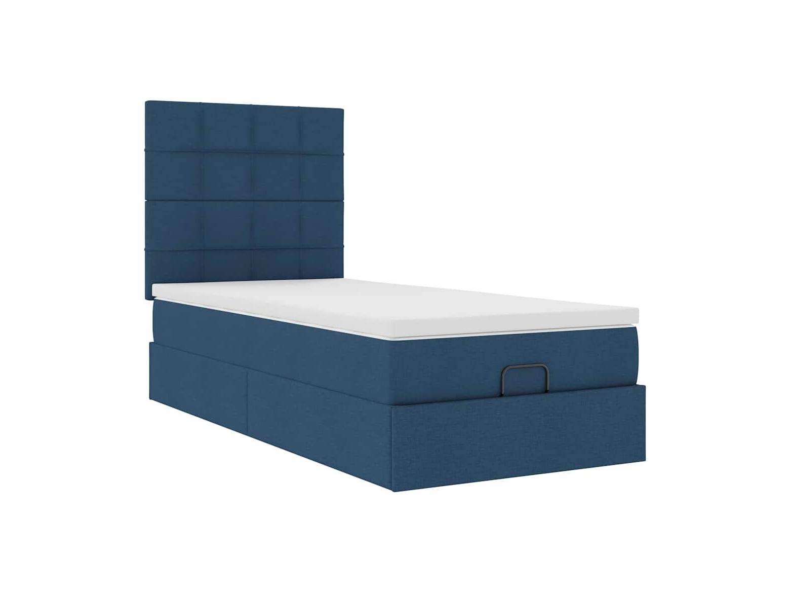 Estrutura de cama otomana com colchão tecido azul 80x200cm
