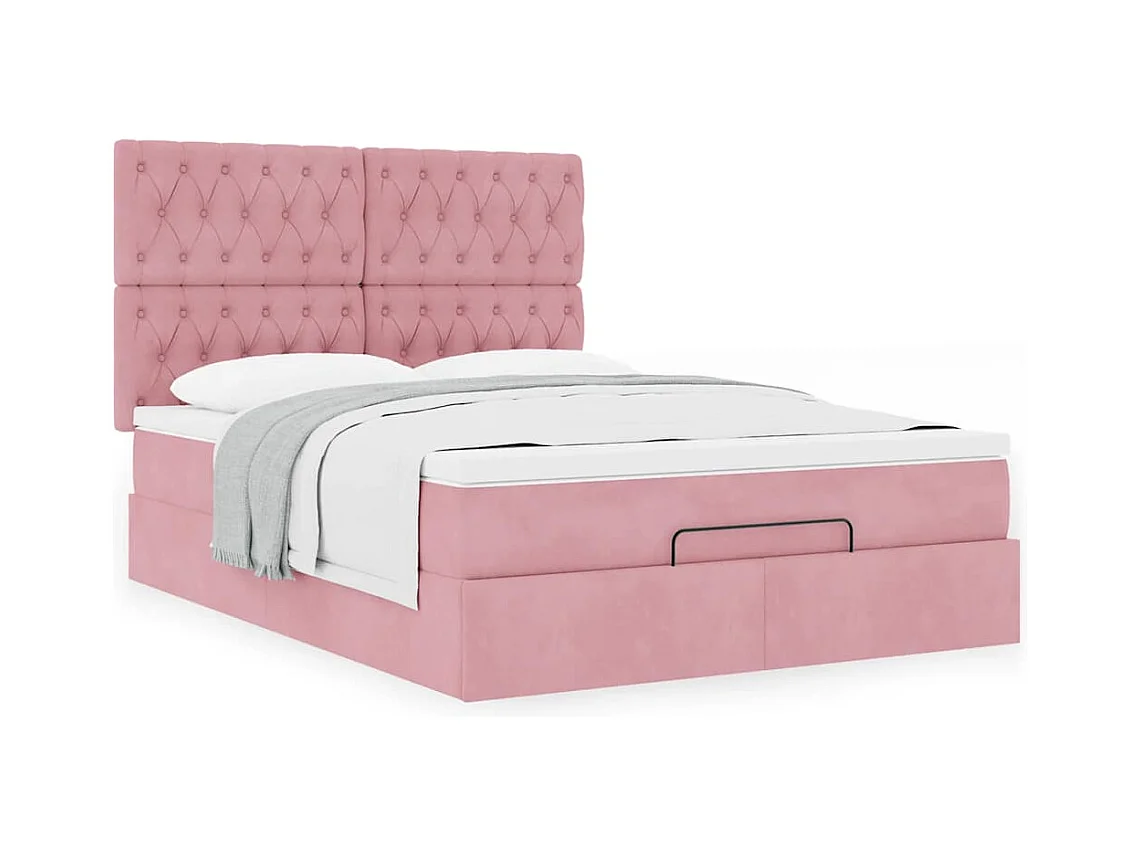 Estrutura de cama otomana com colchões 140x200 cm veludo rosa