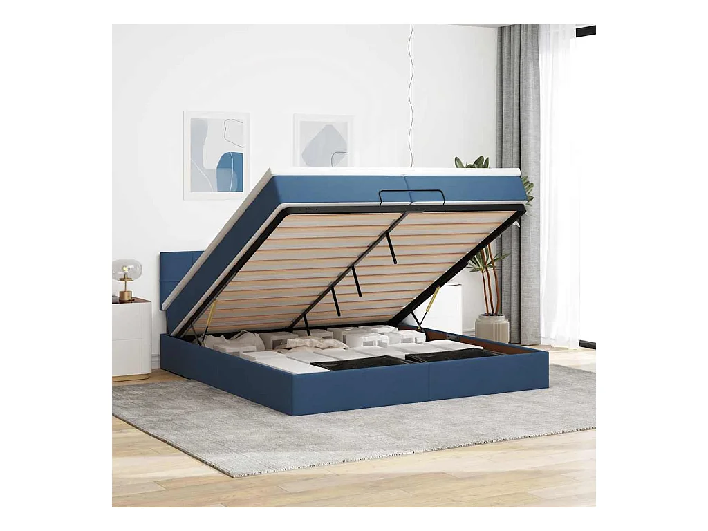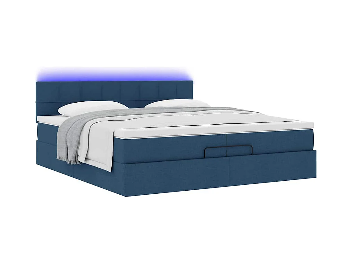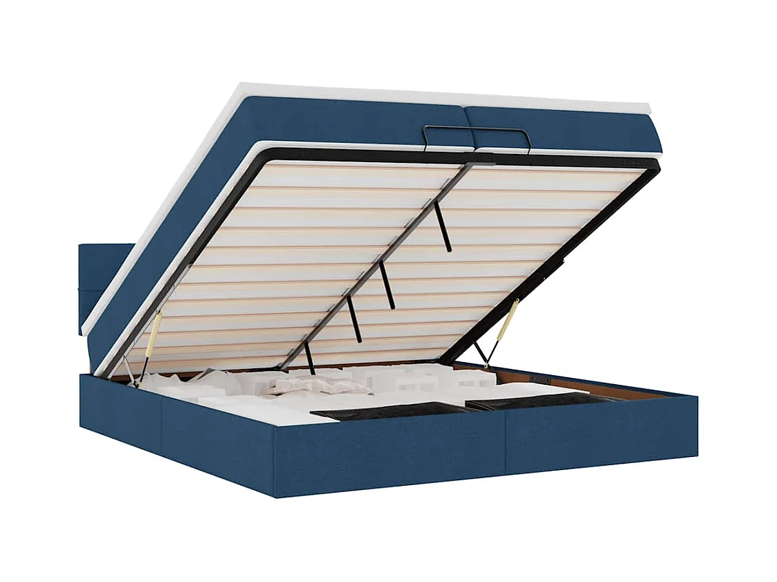 Estrutura de cama otomana com colchões 200x200cm tecido azul