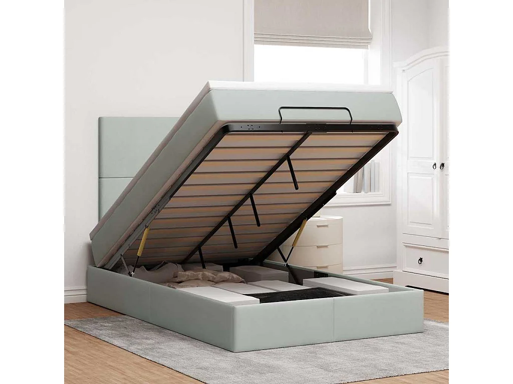 Estrutura de cama otomana com colchões cinza claro Veludo