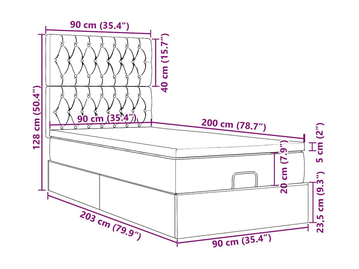 Cama otomana com colchão 90x200 cm tecido cinzento claro