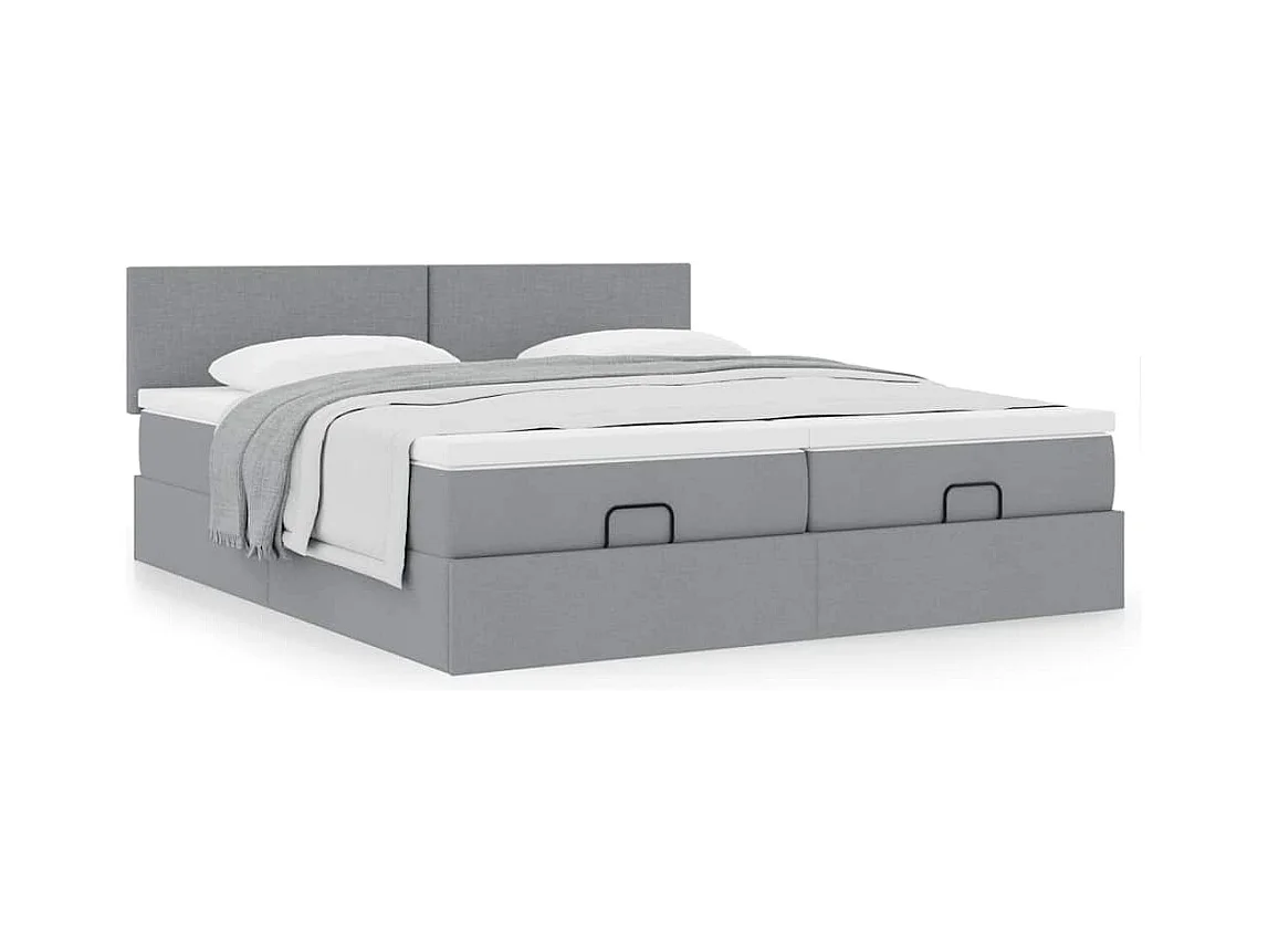 Estrutura de cama otomana com colchões tecido cinzento claro