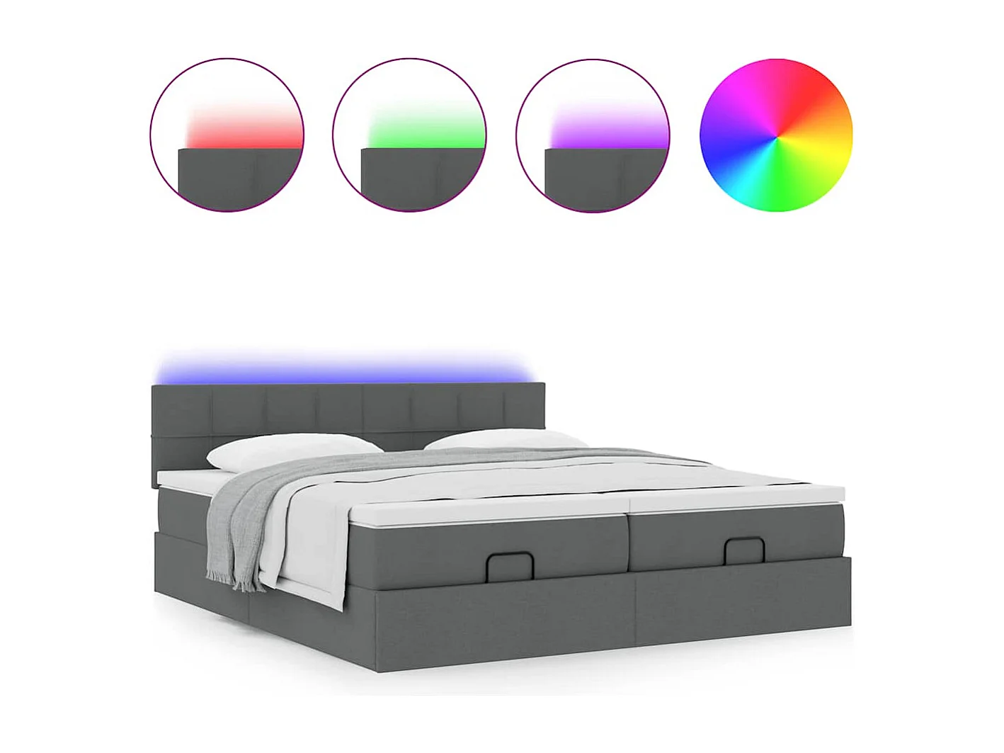 Estrutura de cama otomana com colchões tecido cinzento escuro