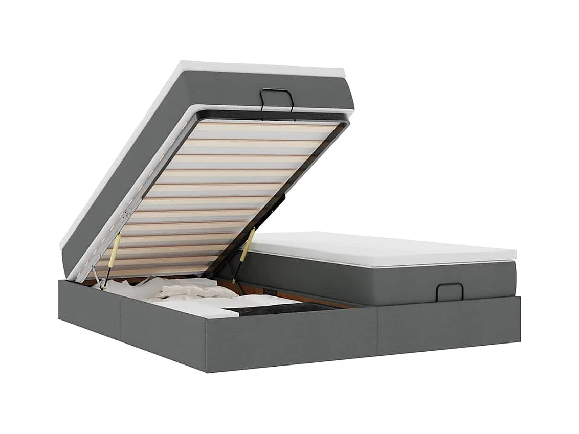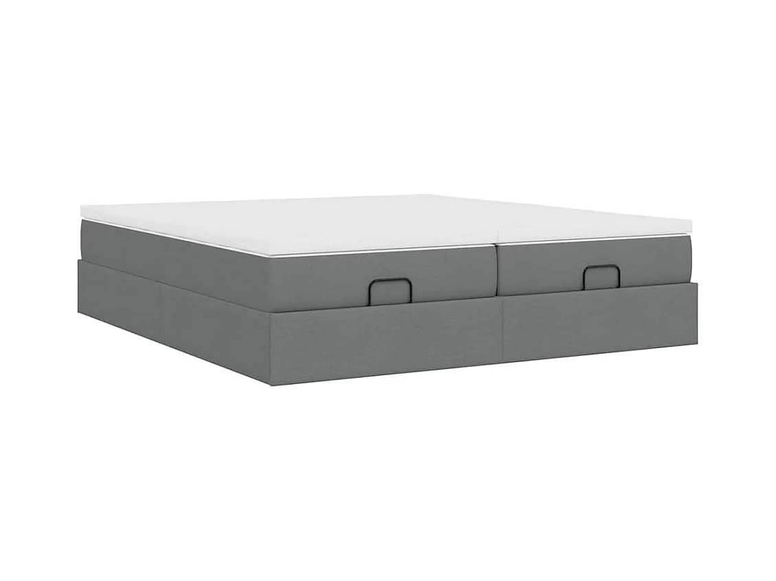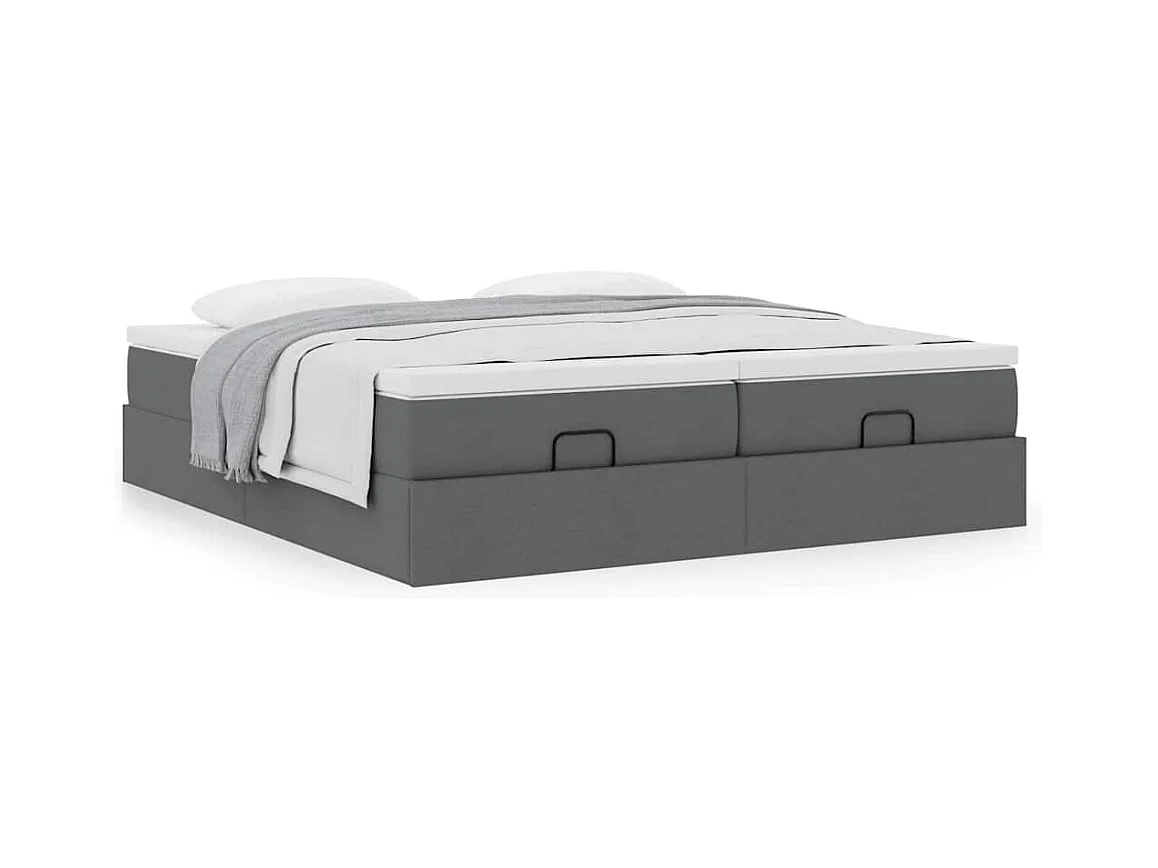 Estrutura de cama otomana com colchões tecido cinzento escuro