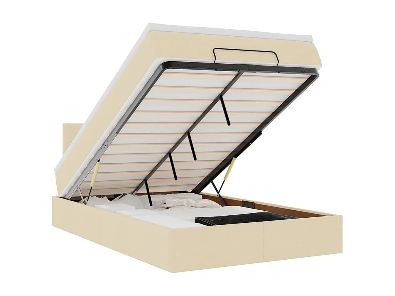 Estrutura de cama otomana com creme de colchão 140x190cm tecido