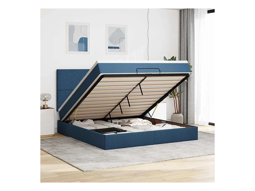Estrutura de cama otomana sem colchão tecido azul 180x200 cm