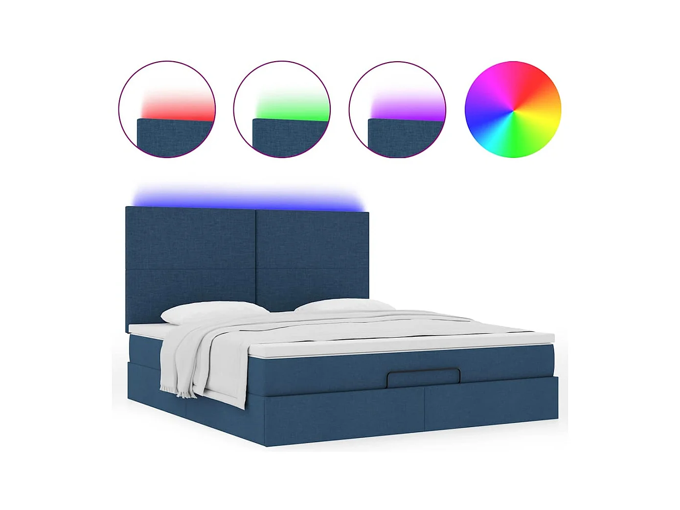 Cama Otomana com colchão & LEDs 180x200cm tecido azul
