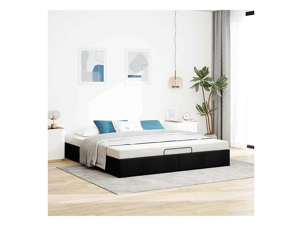 Estrutura de cama otomana sem colchão 160x200 cm tecido preto