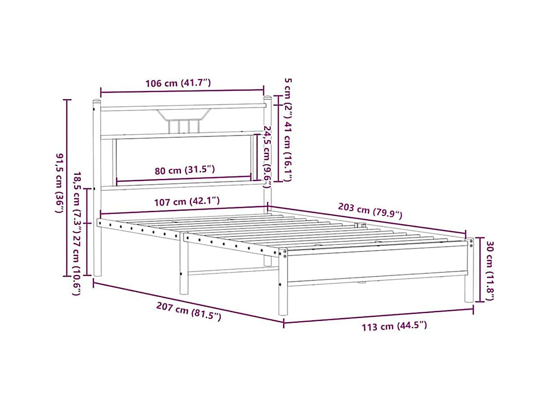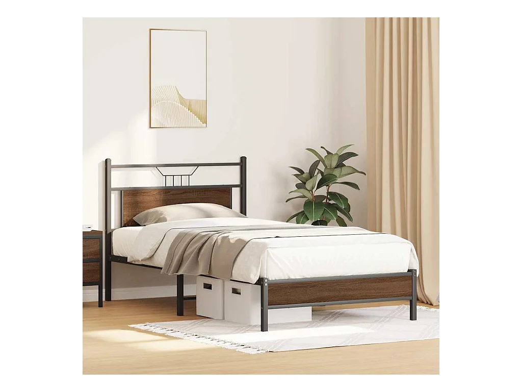 Estrutura de cama sem colchão 107x203 cm carvalho fumado