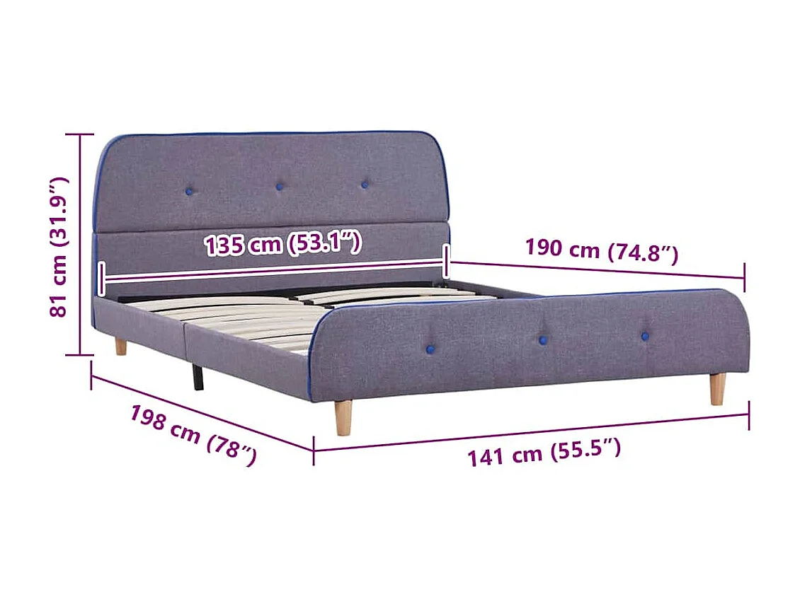 Estrutura de cama sem colchão 135x190 cm tecido cinzento-claro
