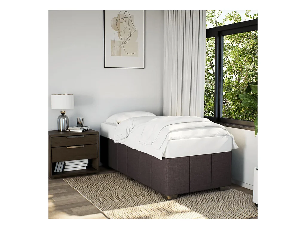 Estrutura de cama sem colchão 90x200 cm tecido castanho-escuro