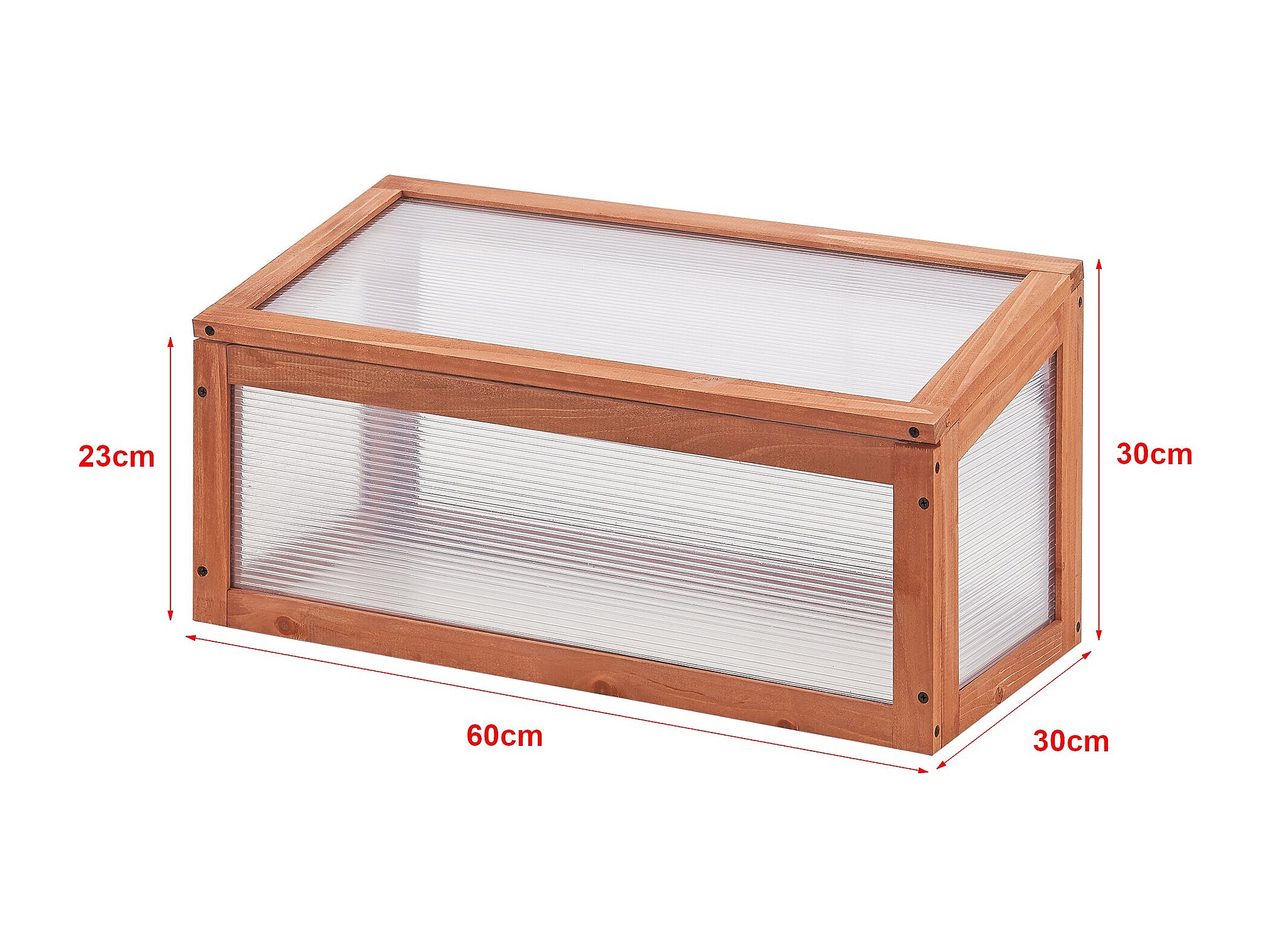 Estrutura de jardim com telhado inclinado em policarbonato e pinho 60 x 30 x 23-30 cm 03_0008266