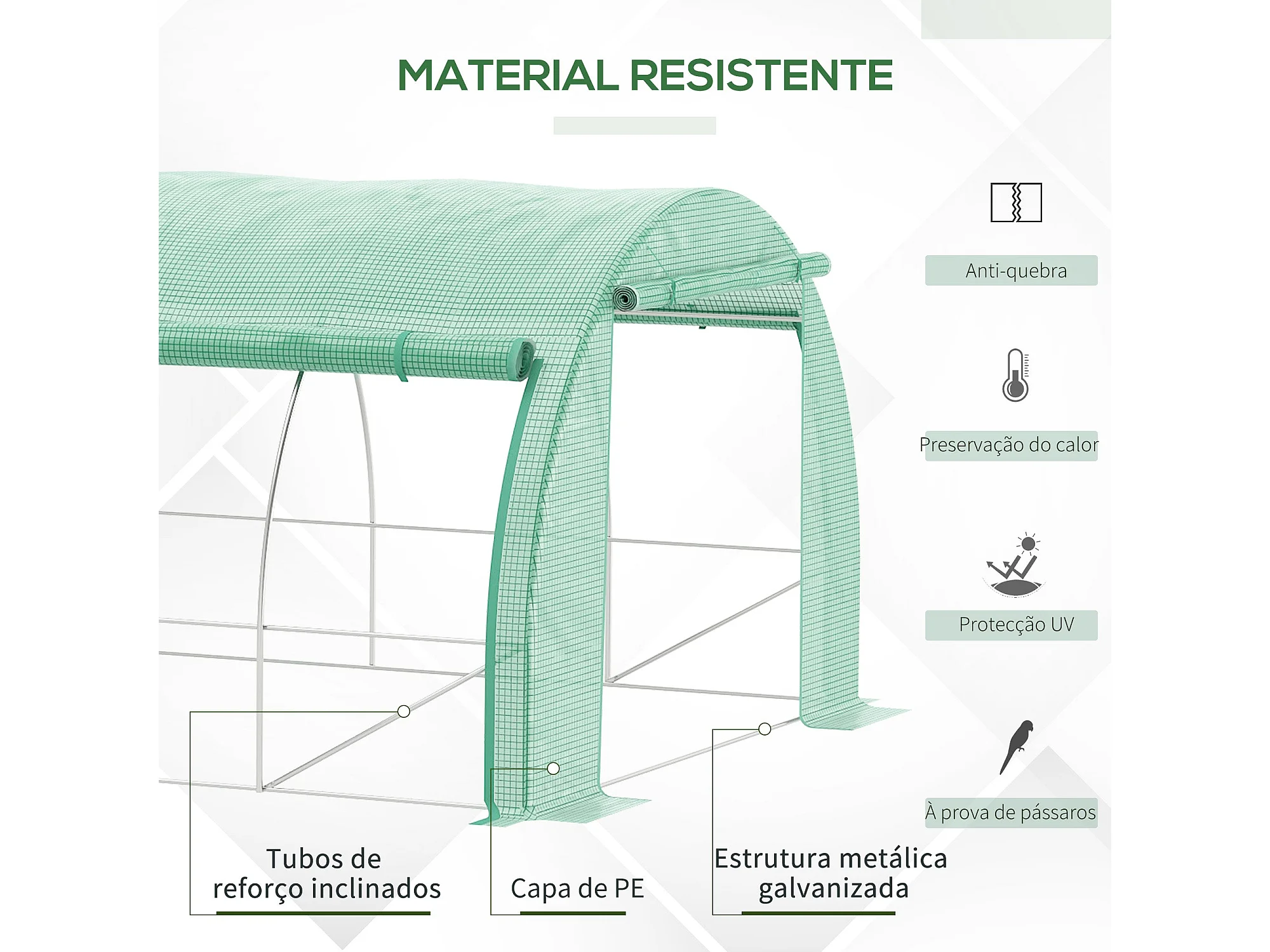 Estufa de Jardim Túnel 397x300x200 cm com Ventilação e Estrutura de Aço Galvanizado