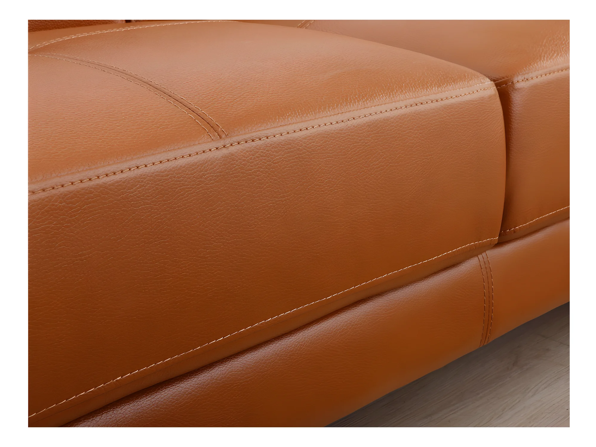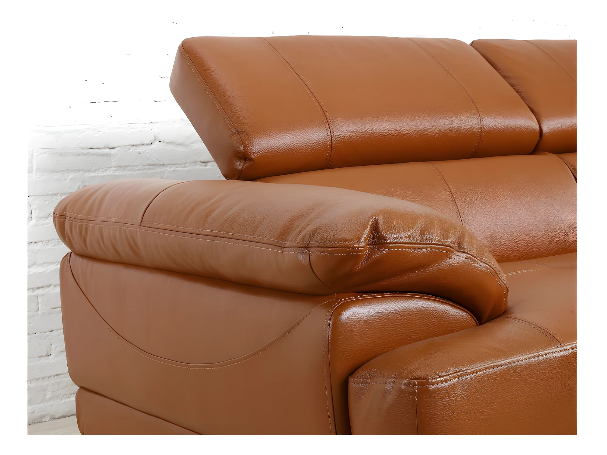 Sofá de canto direito em pele premium caramelo EXCELSIORA
