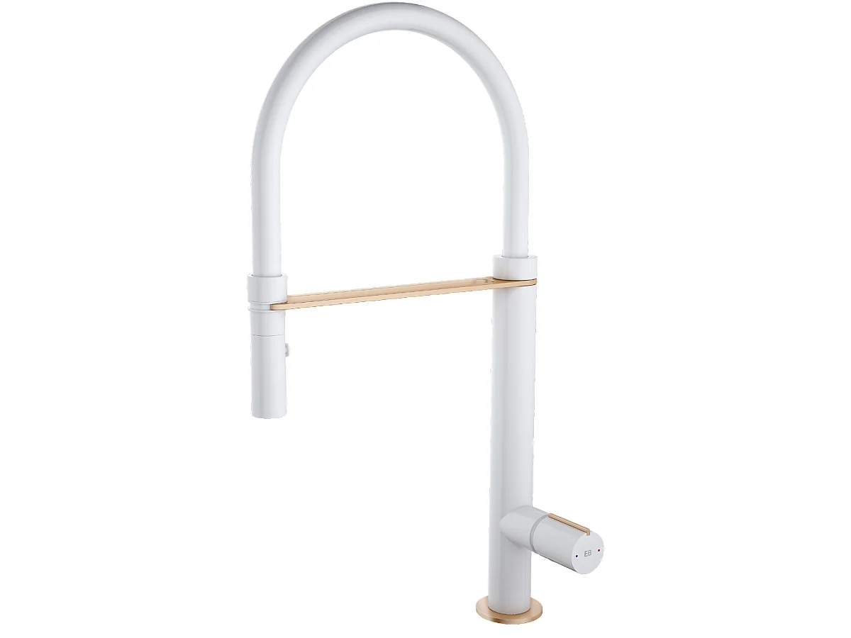 Exil Misturadora de lavatório com chuveiro de mão branco e ouro rosa Essebagno