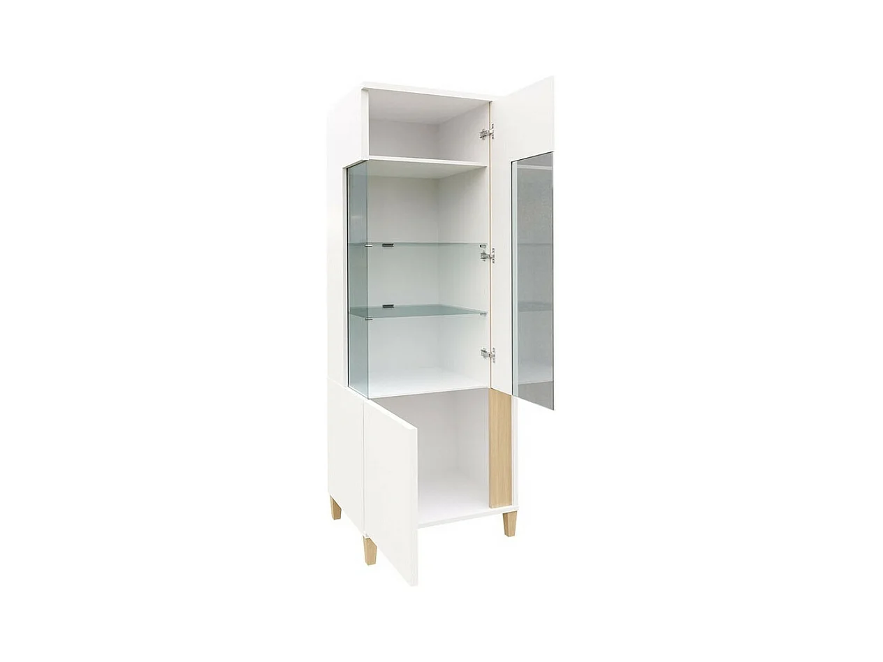 Loki | Vitrina com 1 Porta e 2 Gavetas em Pinho Branco