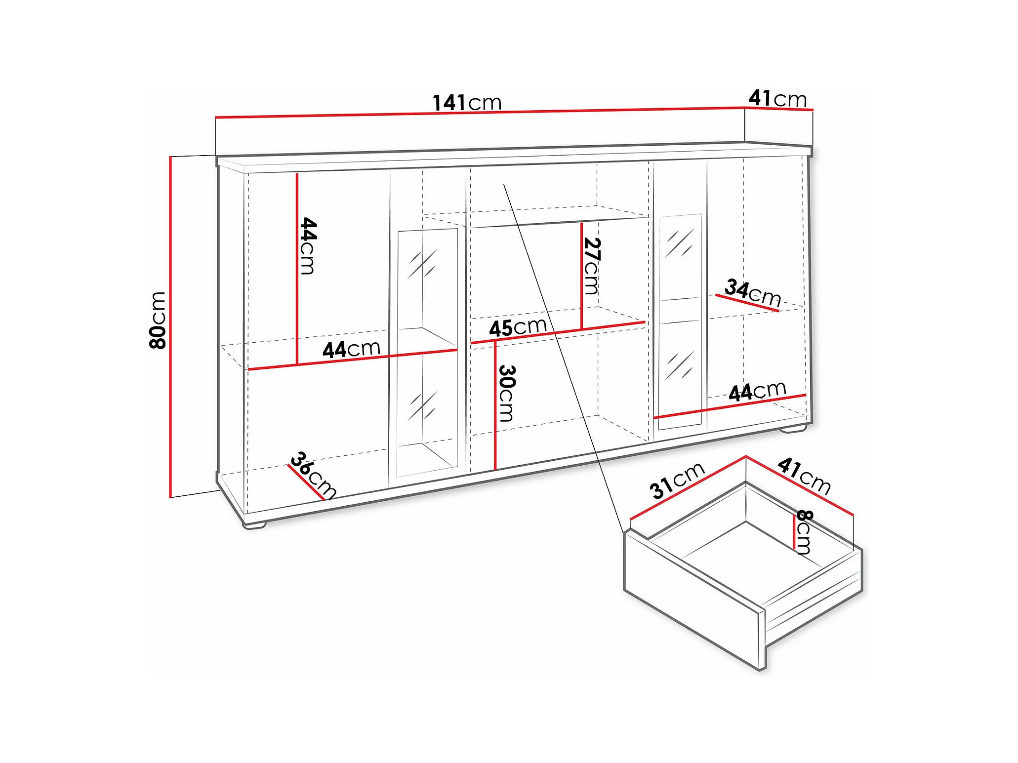 Cómoda Tucson 114, Com gavetas e portas, Número de gavetas: 1