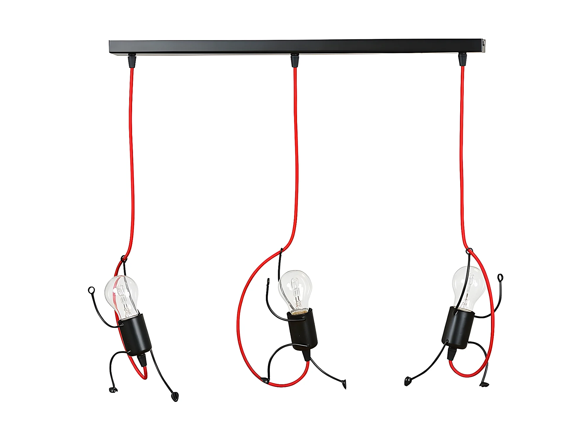Candeeiro suspenso infantil Mime em metal preto com braços e cabo vermelho 1xE27 ø14cm
