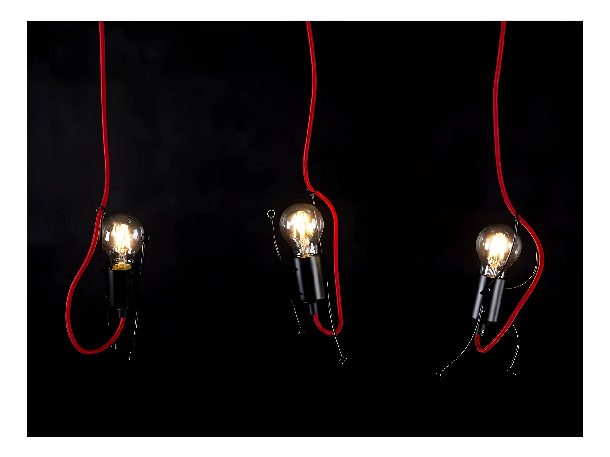 Candeeiro suspenso infantil Mime em metal preto com cabos vermelhos 2xE27 ø20cm