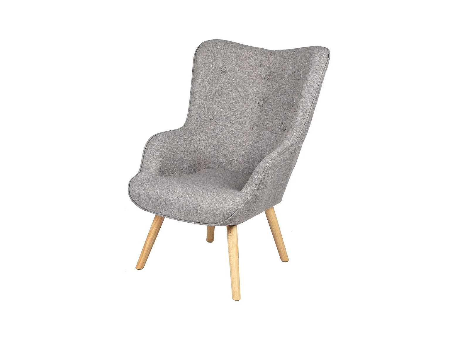 Fauteuil de salon en tissu gris clair avec pieds en bois collection ENJOY. Style scandinave