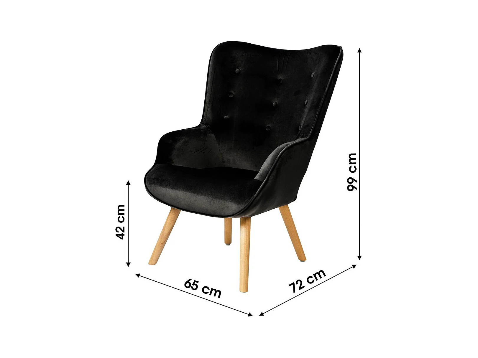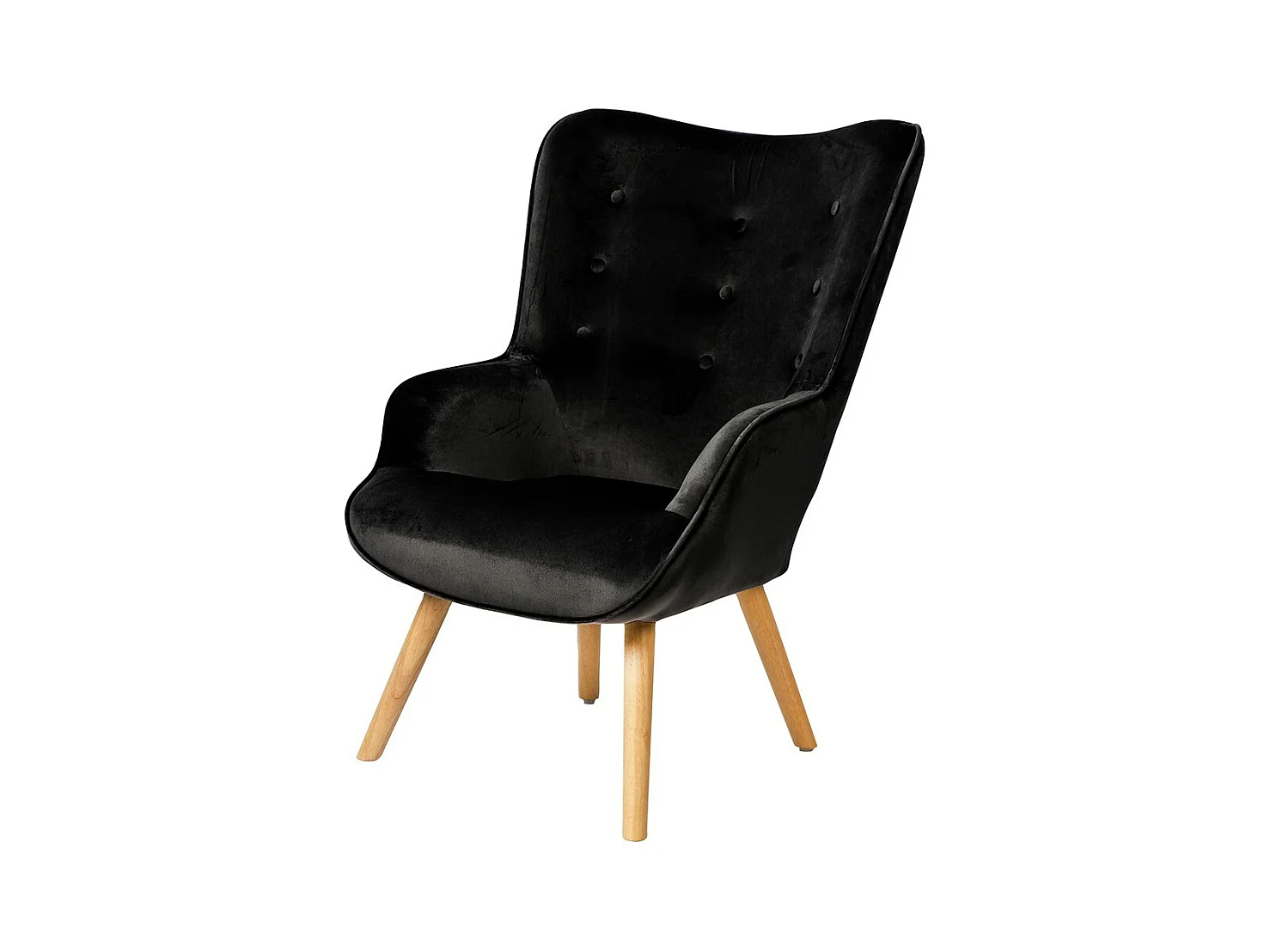 Fauteuil de salon en velours noir avec pieds en bois collection ENJOY. Style scandinave