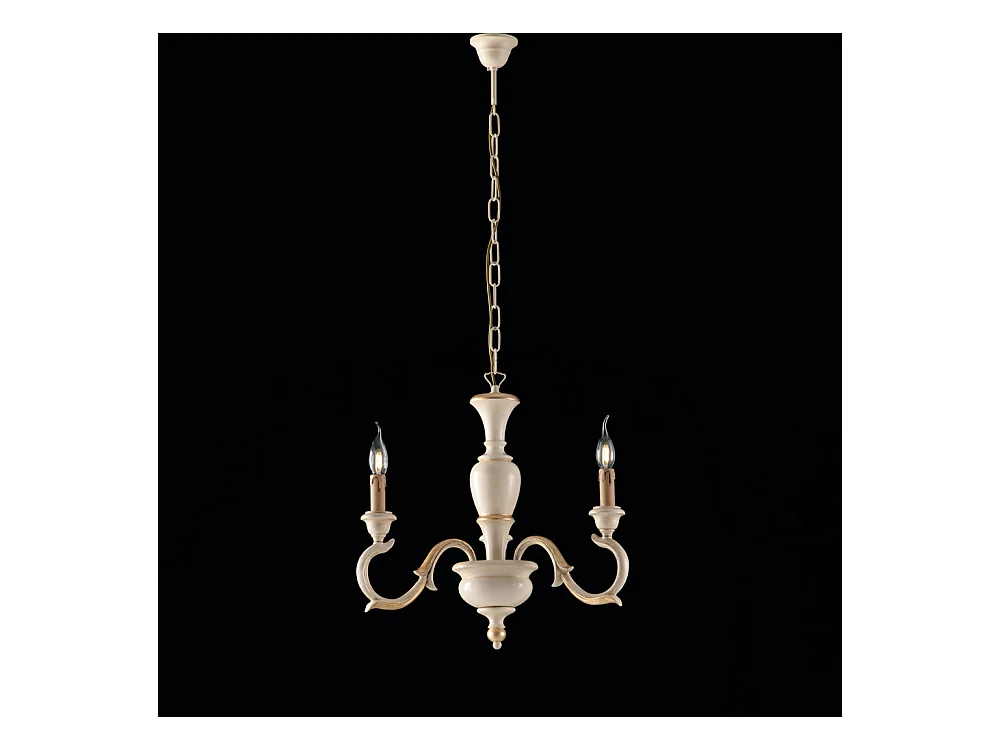 Fiorenza - Lustre em madeira marfim e folha de ouro 3 luzes 110 - Ø43 - BL172-3-AV
